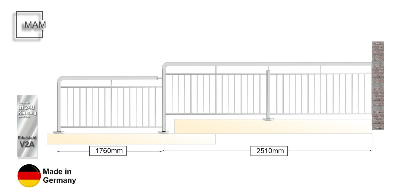 Bestellhöhe: ~920mm von Fussplatte bis Oberkante Handlauf